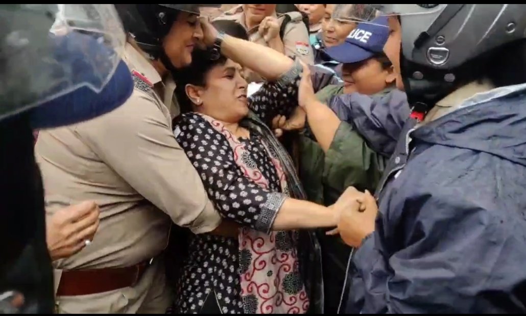उत्तराखंड , देहरादून: उत्तराखंड महिला कांग्रेस के द्वारा आज राजधानी देहरादून में राजभवन कूच किया गया। प्रदेश महिला कांग्रेस कमेटी की अध्यक्ष ज्योति रौतेला के नेतृत्व में यह कूच किया गया। हालांकि राजभवन से पूर्व ही भारी पुलिस बल द्वारा इन्हें बेरिकेटिंग लगाकर रोक दिया गया। जिससे नाराज महिला कांग्रेस सड़क पर ही धरने पर बैठ गई। इस दौरान प्रदेश की महिलाओं को न्याय दिलाओ के नारे लगते रहे। प्रदेश अध्यक्ष महिला कांग्रेस ने इस दौरान कहा कि एनसीआरबी की रिपोर्ट के अनुसार हिमालयी राज्यों में उत्तराखंड महिला अपराधों में नंबर वन पर आता है और इसीलिए हम लगातार आवाज उठा रहे हैं कई बार गवर्नर साब से समय मांगने पर भी हमें समय नहीं मिला, इसलिए आज हमें कूच करना पड़ा।