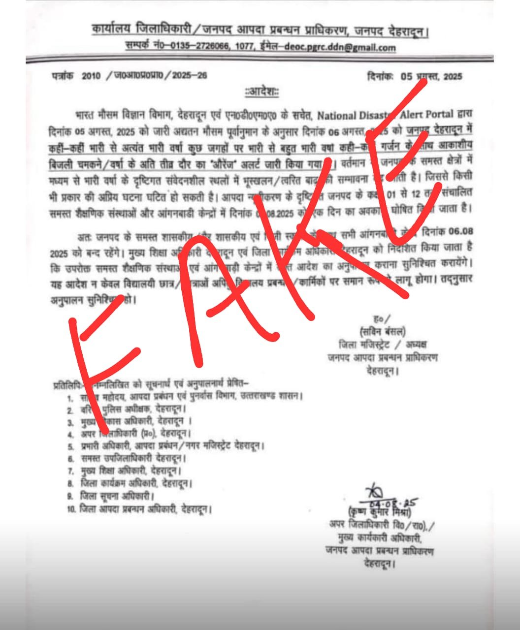 जिला प्रशासन द्वारा छुट्टी की कोई आदेश जारी नहीं किया गया। इस तरह के कृत करने वालों के विरुद्ध आपदा प्रबंधन व बी.एन.एस. Act के सुसंगत धारा में FIR दर्ज की जा रही है.