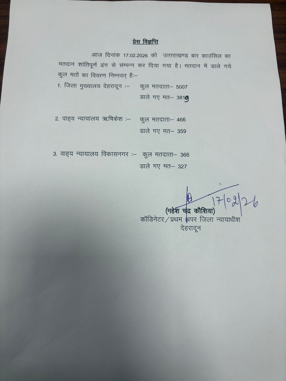 बार कौंसिल ऑफ़ उत्तराखंड के मतदान संपन्न